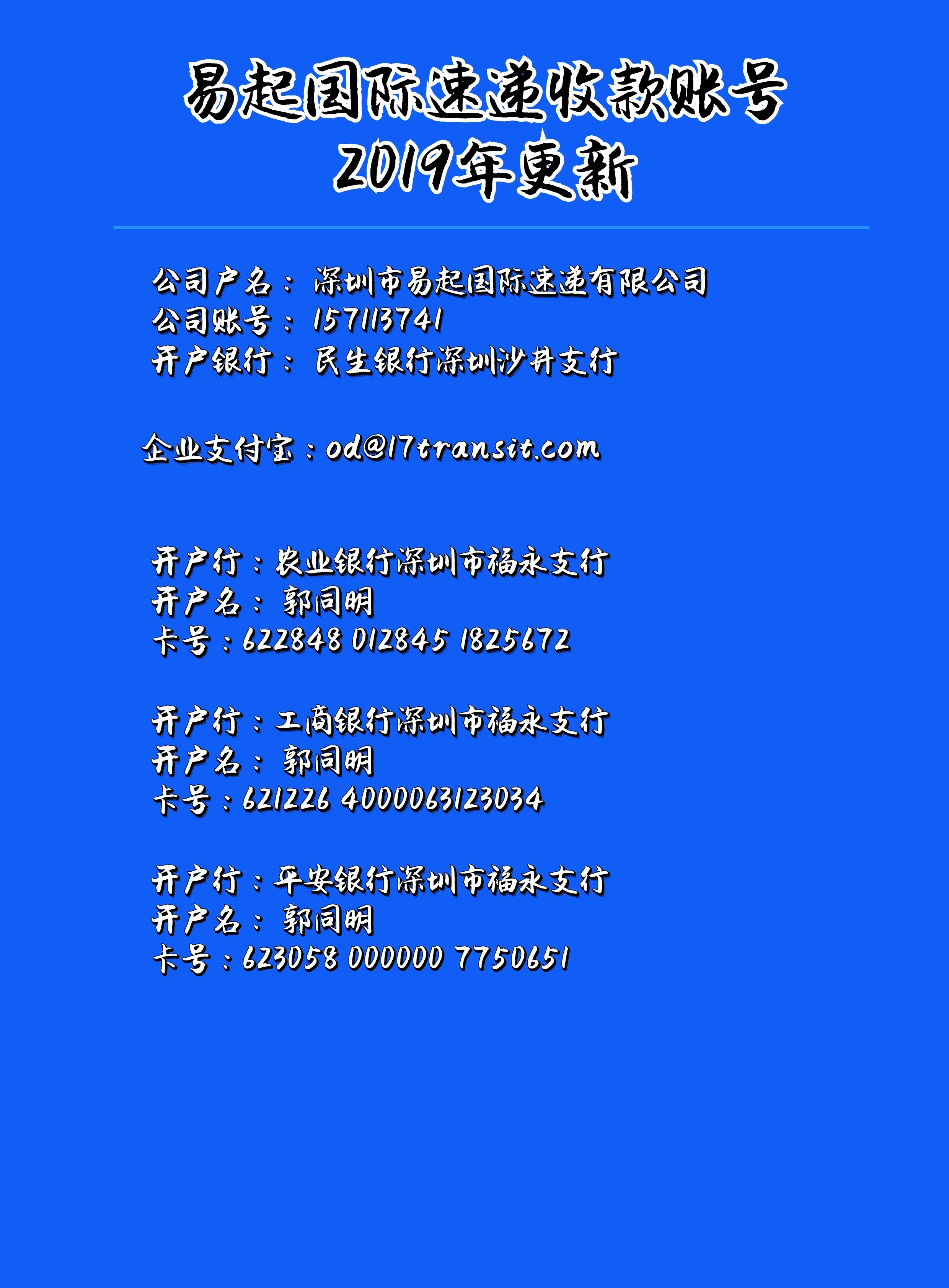 以上是关于易起国际速递付款账号的全部内容,如果您想要了解更多关于易起国际速递付款账号内容,请联系我们易起国际速递咨询